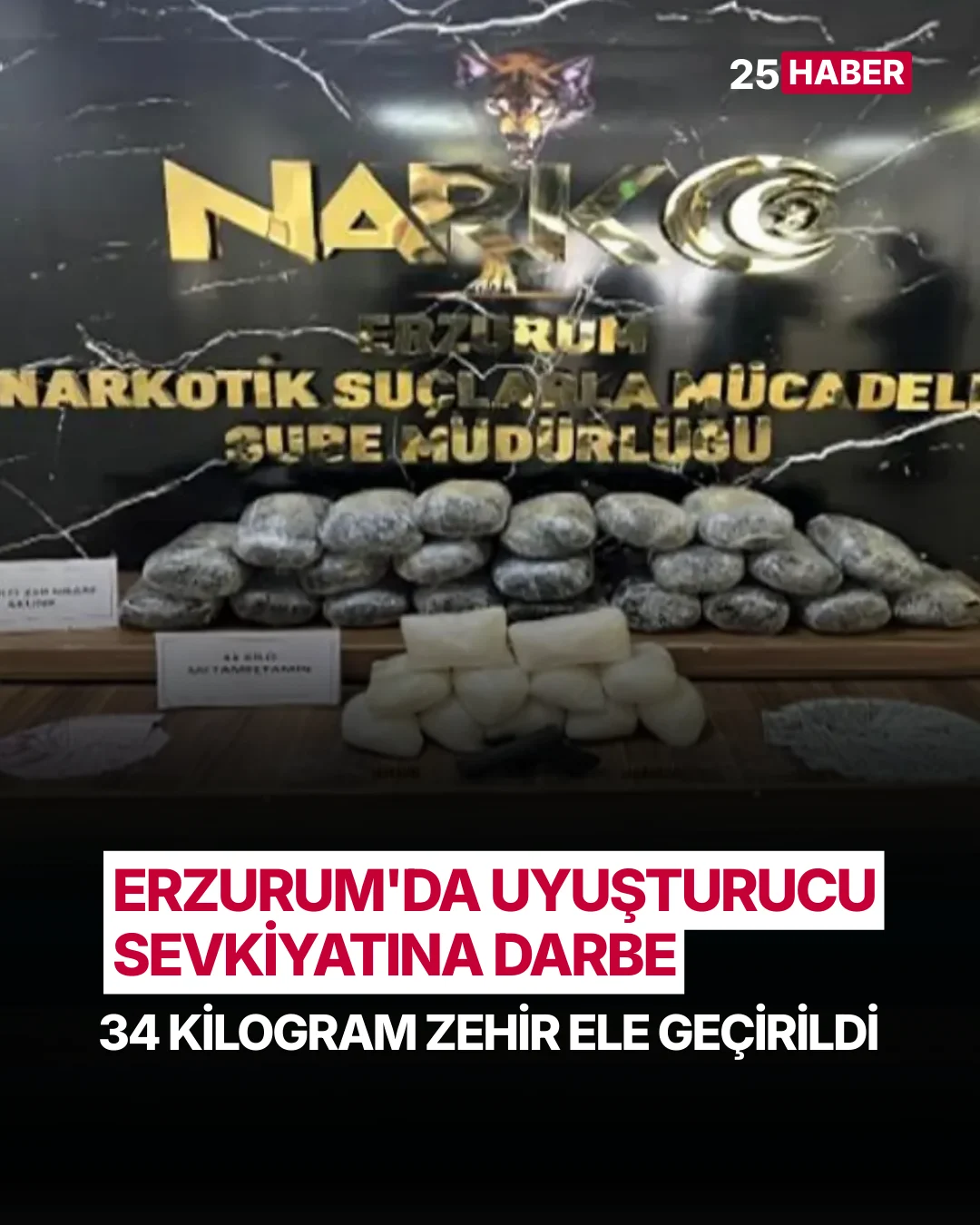 Erzurum’da Uyuşturucu Sevkiyatına Darbe! 34 Kilogram Zehir Ele Geçirildi!